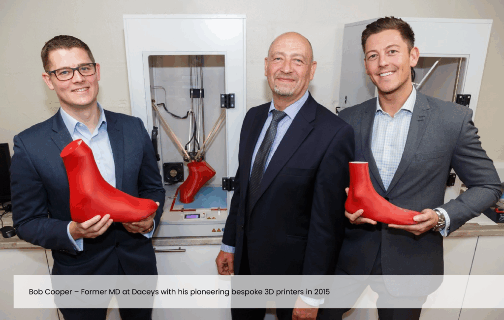 This partnership powers a major digital leap forward at Daceys, where LutraCAD technology now drives the newly completed CADCAM Lab. The facility features integrated scanners, advanced design software and a dedicated farm of industrial 3D printers. Daceys’ reputation for innovation stretches back decades – under former owner Bob Cooper, the company was one of the UK’s earliest adopters of 3D printing, using bespoke machines to manufacture surgical footwear lasts more than a decade ago.